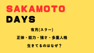 バトル漫画アニメ 「サカモトデイズ」有月(スラー)の正体・能力・強さ・多重人格って⁈生きてるのはなぜ?