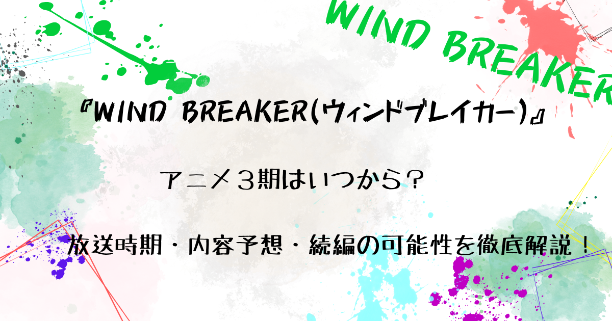 本記事では『WIND BREAKER』アニメ3期について、詳しく解説していきます!
